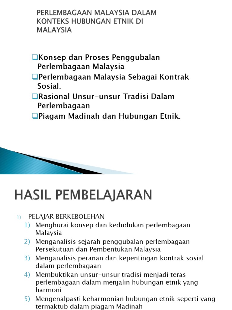 Konteks Hubungan Etnik Di Malaysia Bab 3 Perlembagaan Malaysia Dalam Konteks Hubungan Etnik Di Malaysiactu553 Hubungan Etnikmahyuddinkhalid Ashrofzaki Uitm Emkay Salam Uitm Edu My from i2.wp.com Di malaysia,setiap kupulan etnik mempunyai bahasa,adat resam,kepercayaan agama, dan kecenderungan yang berbeza termasuk dalam berpolitik.bilangan pengundi merupakan factor penting dalam politik dan pilihan raya. 1.3.1 pendahuluan masyarakat merupakan kelompok manusia yang mempunyai budaya dikongsi bersama dan berbeza dengan budaya lain serta mempunyai kawasan geografi tersendiri. •menganalisis pembangunan lima tahun sebelum 1970 dan selepas tahun 1970. 3 perlembagaan dalam konteks hubungan etnik di malaysia 3.1 konsep dan proses penggubalan perlembagaan malaysia. Bab 3 perlembagaan malaysia dalam konteks hubungan etnik di malaysiactu553 hubungan etnikmahyuddinkhalid&ashrofzaki, uitm emkay@salam.uitm.edu.my. Permuafakatan politik dalam konteks hubungan etnik di malaysia. Bagi mengukuhkn lagi penyatuan kaum dan etnik yang ada di malaysia melalui politik selepas peristiwa 13 mei tersebut, kerajaan perikatan telah berpendapat bahawa perlunya untuk mengadakan kerjasama dengan. Dlam konteks negara malaysia terdapat pelbagai kumpulan etnik yang wujud samada di semenanjung malaysia mahupun sabah dan sarawak.